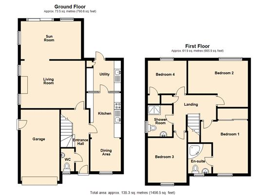 The stairs take you to the first floor where we have 4 bedrooms three double rooms and one single bedroom, currently used as a study. The principle bedroom has fitted wardrobes a very generous ensuite bathroom with a corner bath, WC and wash hand basin. There is an additional refitted family shower room, with double cubicle WC and wash hand basin.