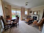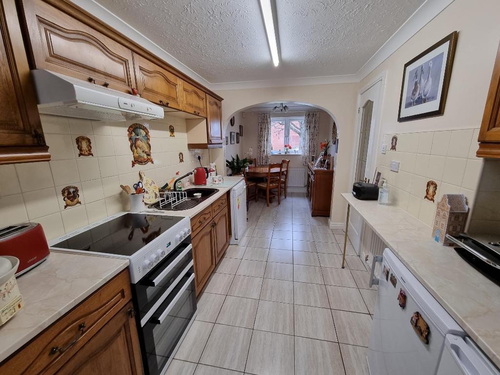 The property is approached over a driveway to the front and lawned and gravelled fore gardens leading to an entrance door into the entrance hall, having stairs off to the first floor and study space under the stairwell and further doors communicating off. The cloakroom has WC and wash hand basin and further door leads into the Kitchen. This room is divided into three section the main kitchen area which has base and wall units with worksurfaces over, and ample space for appliances a dining/breakfast area with window to the front and a very useful utility room to the rear, having plumbing and space for washing machine and tumble dryer and door and window to the rear. The living room is a good size and has windows to the side elevation and feature fireplace with electric fire, this room leads through to a further extended room with feature fireplace and patio door and windows overlooking the rear garden. These rooms can be alternated to be used as dining room/lounge and both have television points.