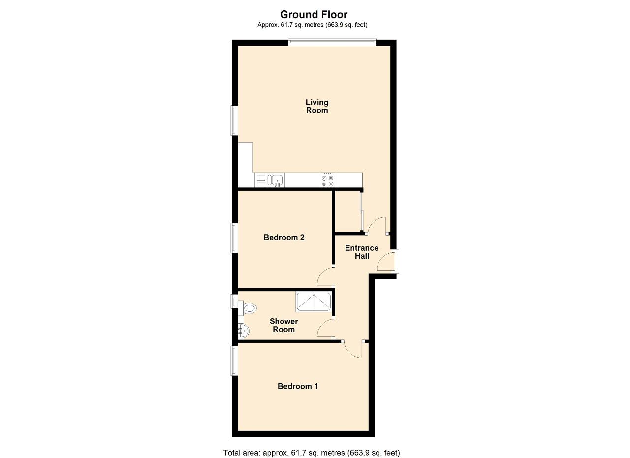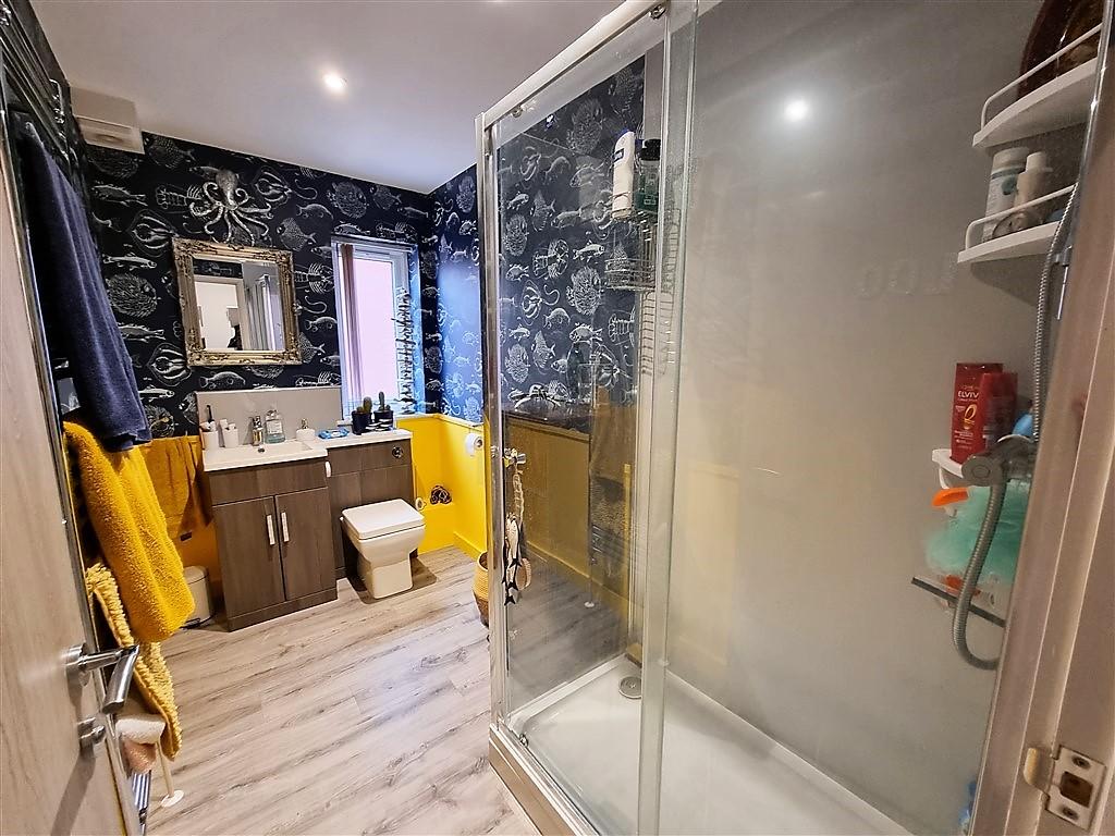 The apartments are approached over a pathway leading to the entrance door which is lockable and has a security intercom system, leading into a communal hallway. The entrance door leads into a spacious hallway with doors off to the principal rooms. The first of the rooms is an open plan living/dining/kitchen which is fitted with a range of base and wall units with work surfaces over, sink drainer and is fitted with appliances of gas hob, electric oven, cooker hood, a tall fridge freezer and washing machine. This room has full height windows to the front elevation and windows to the rear making it a delightful light and airy room, and is great for dining or relaxing. It also has a very useful built in storage cupboard. From the hallway there are two double bedrooms, the principle bedroom having decorative panels to the feature wall and double glazed windows to the rear elevation. The family shower room is fitted with a double shower cubicle with fitted shower, WC and wash hand basin with heated towel rail and window to the rear. The property benefits from gas fired central heating and double glazing throughout.