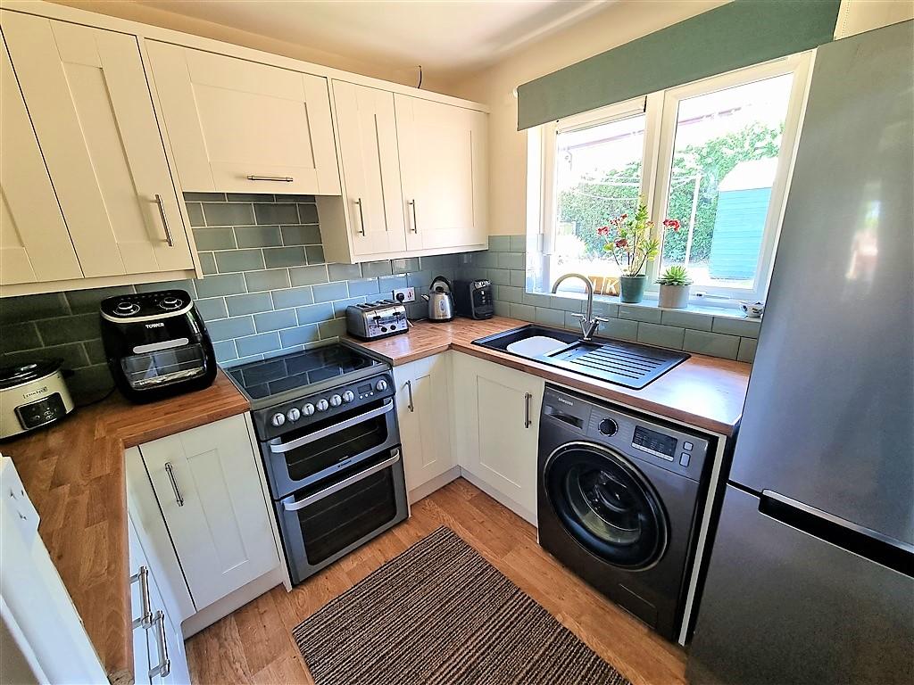 The property itself is approached over a lawned foregarden, with ample driveway parking, leading to side entrance door leading into the hallway. The kitchen has been refitted by the current owners to offer a range of base and wall units, sink drainer unit, plumbing for washing, space for cooker, and fridge/freezer, useful storage cupboard and window overlooking the rear gardens. (the kitchen appliances are available by separate negotiation) The lounge/diner is a spacious room with double glazed bay window to the front, with ample space for table and chairs. The inner hall gives access to 2 bedrooms, the main bedroom with window to the front and fitted wardrobes. The second bedroom is located to the rear and has a door giving access onto the rear gardens. The bathroom has been fitted to offer a walk in shower with lower level shower screen, WC and wash hand basin. There is a window overlooking the rear elevation. The property offers double glazing and electric heating throughout.