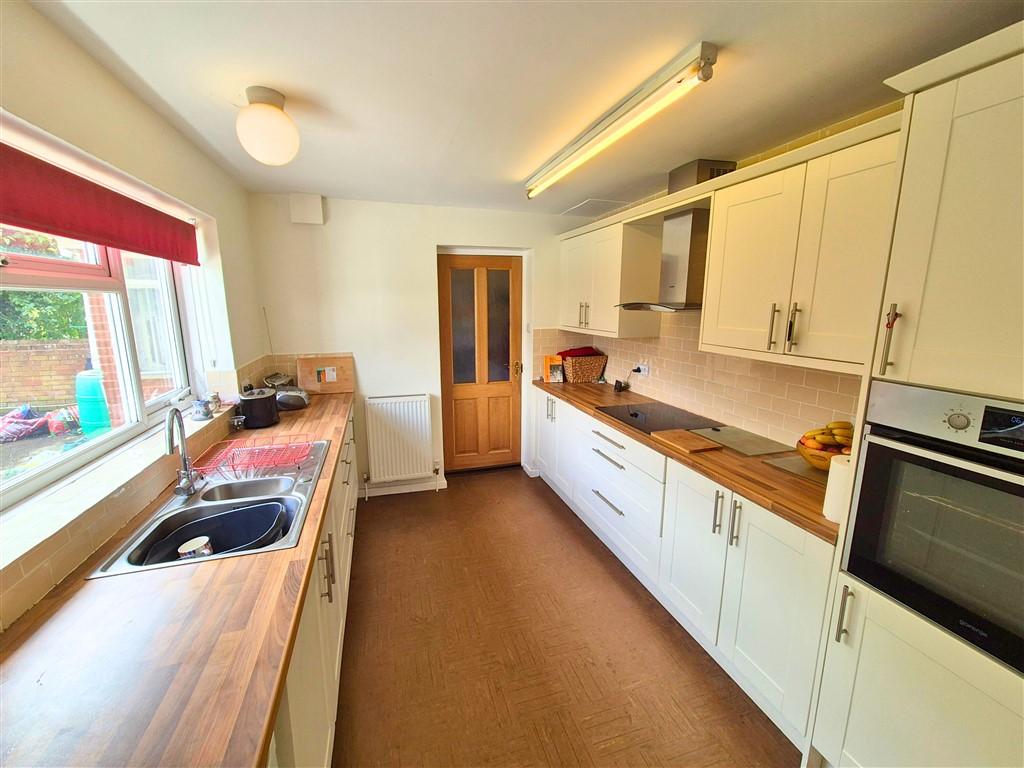 The property is approached over a lawned foregarden with driveway parking, which leads to the entrance door into an enclosed porch. A further door leads into the hallway which has wooden flooring, stairs off to the first floor and door leading off to a useful cloakroom with WC and wash hand basin. The lounge/diner is a lovely light room with windows to the front and rear with wooden flooring, fireplace and doors leading into the conservatory, which is double glazed and overlooks the rear gardens. The kitchen is fitted with a range of base and wall units, with sink drainer, fitted electric oven and hob with cooker hood over, plumbing and facilities for dishwasher and fridge with window overlooking the rear and door leading out to the side. The property has versatile accommodation and offers ground floor bedroom or hobby room/office to suit the buyers requirements. This space has ample room for a bed and has a window to the front elevation.