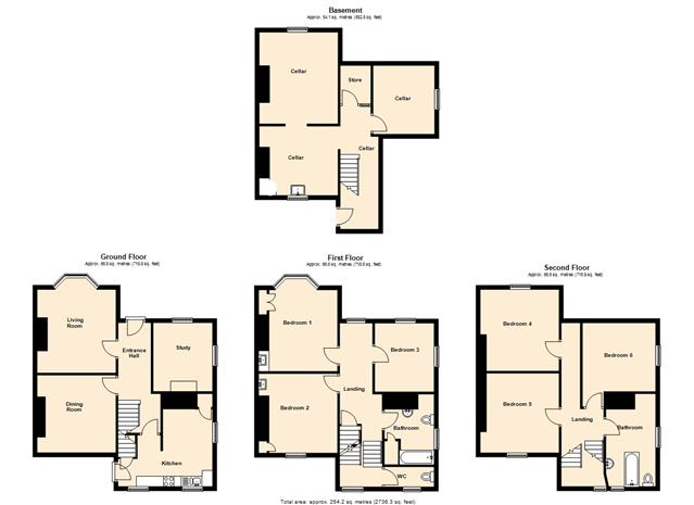 Further stairs lead to the second floor landing which offers an additional three double bedrooms, all being well proportioned and having good head height throughout, with far reaching countryside and townscape views. The second bathroom is fitted with bath, WC and wash hand basin with windows to the side and rear.
