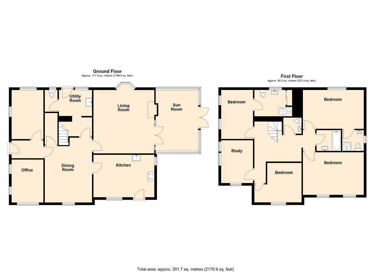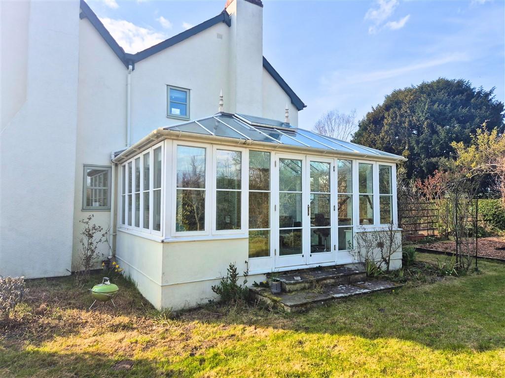 The living room is a generous sized room with bay window to the rear, feature fireplace with inset wood burning stove and doors opening into the garden room. The garden room addition was constructed by Atrium and is a delightful space being glazed to three sides, with opening roof lights and doors opening out onto the gardens, a lovely addition to the living space.