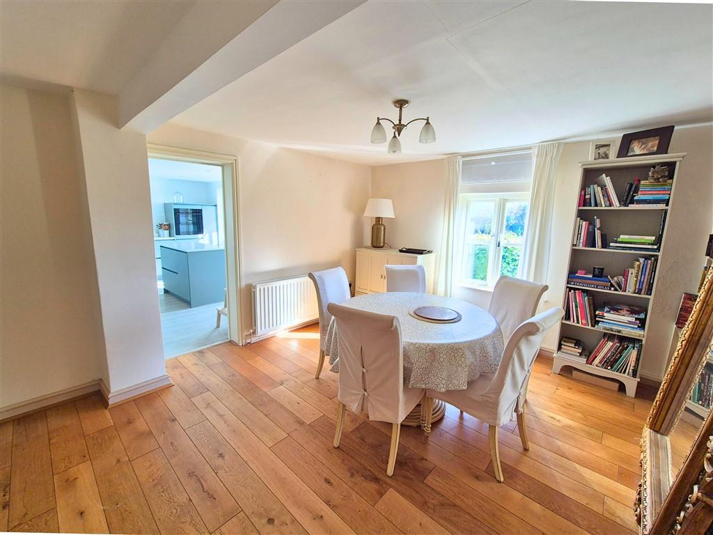 The property is approached over a driveway to the side with pathway leading to the entrance door with canopied porch leading into the entrance hall. The hallway has hard flooring and doors communicating off the principal rooms. The first two rooms off the hall are versatile and could be used as studies/offices, both having windows to the front and rear and wooden flooring. A further door leads into the dining room which is an ideal space for entertaining with wooden flooring, walk in cupboard, fitted book shelves and window to the front with countryside views.