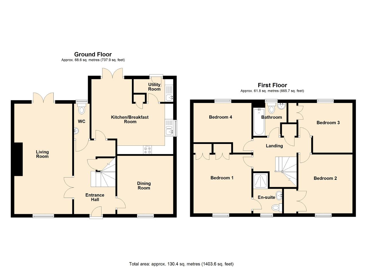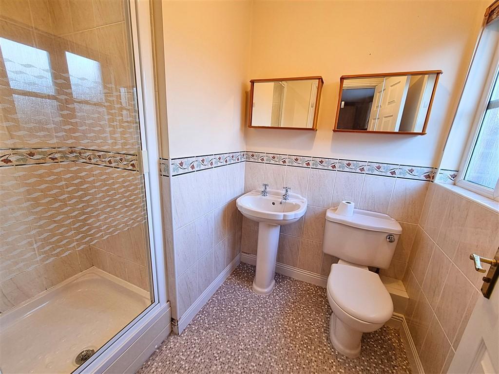 The stairs take you to the first floor landing with airing cupboard and loft hatch with doors communicating off. The property boasts 4 bedrooms to the front and rear elevations. Three of the bedrooms offer fitted wardrobes and the principal room having the benefit of an en-suite shower room fitted with WC, wash hand basin and a shower cubicle, with window and being half tiled. The family bathroom is fitted to offer a bath with shower over and fitted screen, WC and wash hand basin, with half tiling and window overlooking the rear.