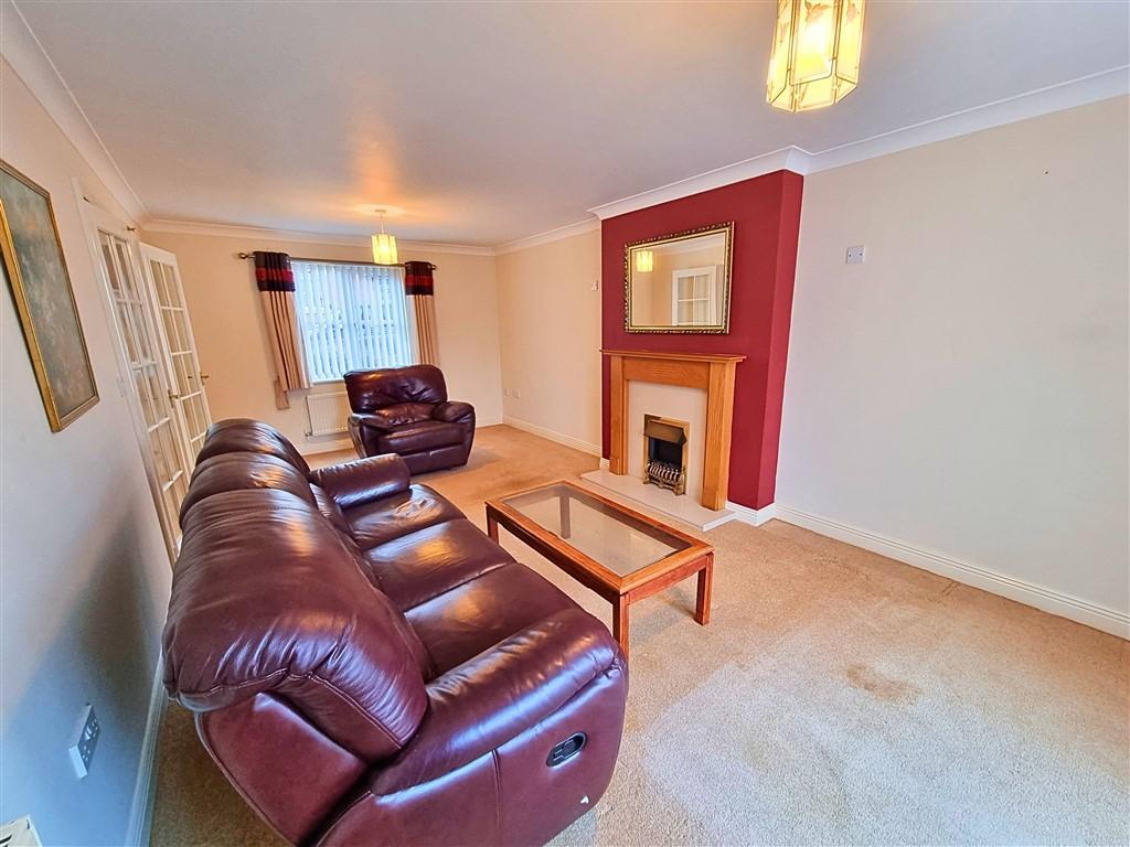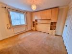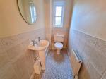 The property is approached over a gravelled foregarden with pathway leading to the entrance door. The door leads into a generous entrance hall with stairs off to the first floor along with a useful cloakroom fitted with WC and wash hand basin. The living room is a spacious having windows to the front and doors to the rear elevation which opens onto the garden. There is also an electric fire with surround and book shelving.