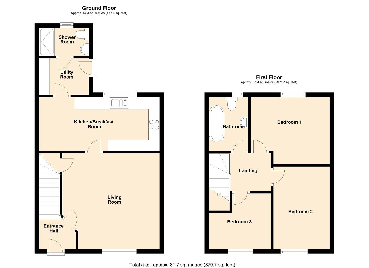 The property is approached over a small foregarden which leads to the entrance door. The door leads into the hallway with stairs off to the first floor and doors communicating off. The living room is a good size room with window to the front and useful built in understairs storage cupboard. The kitchen / diner is located off the living room and is fitted with a good range of base and wall units with worksurfaces over, a fitted gas hob, electric oven, cooker hood, dishwasher and ample space for a table and chairs, with window overlooking the rear. The utility/rear lobby houses the boiler for the central heating and has plumbing for a washing machine, along with a door leading to the rear garden. The ground floor shower room is fitted with WC, wash hand basin and double shower cubicle, tiled flooring and window to the rear.