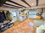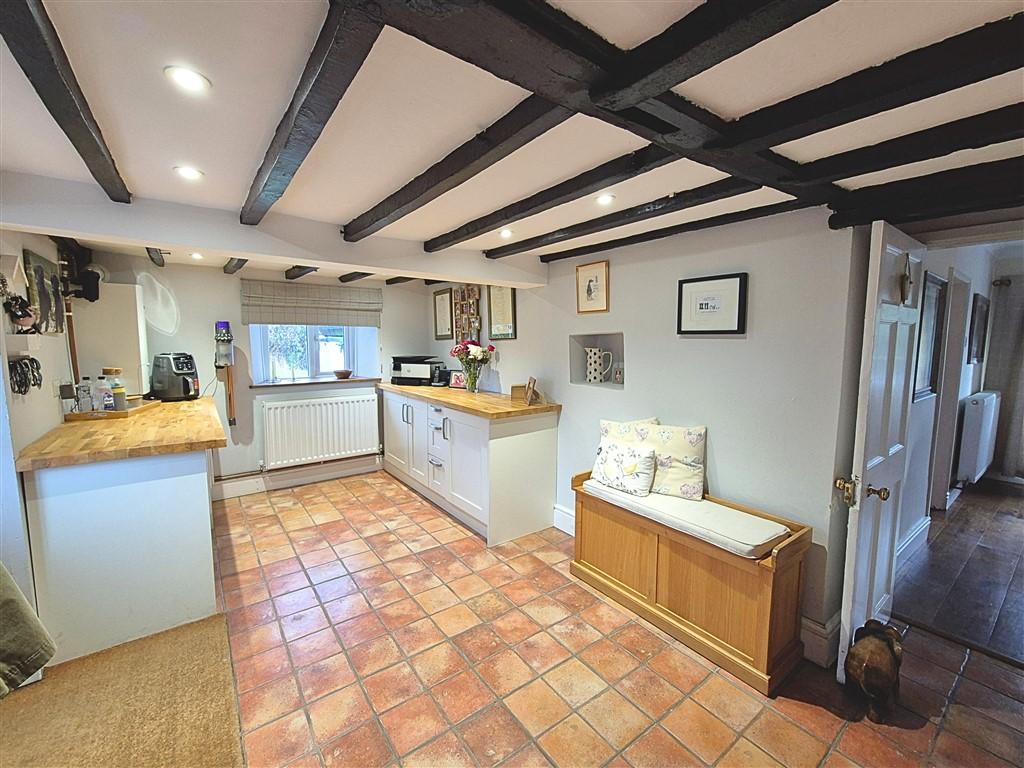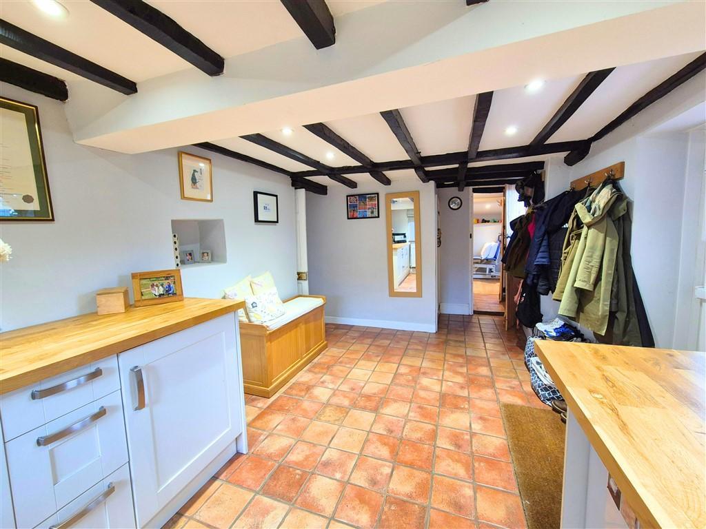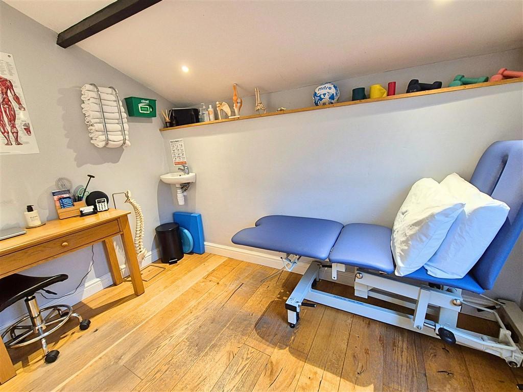 The property is approached through a private gate with good size gravelled driveway with timber shed/store and gated access to the gardens to both sides. The front door is under an Oak framed porch with useful storage cupboard and door leading into the boot room/utility. This is a very generous space with fitted units and built in cupboards, sink drainer and plumbing for washing machine. Having tiled flooring and exposed ceiling beams, it also houses the gas central heating boiler. Located off this room is a cloakroom with WC and wash hand basin and a very useful additional room which is currently used a treatment room, but could easily be a home office or study.