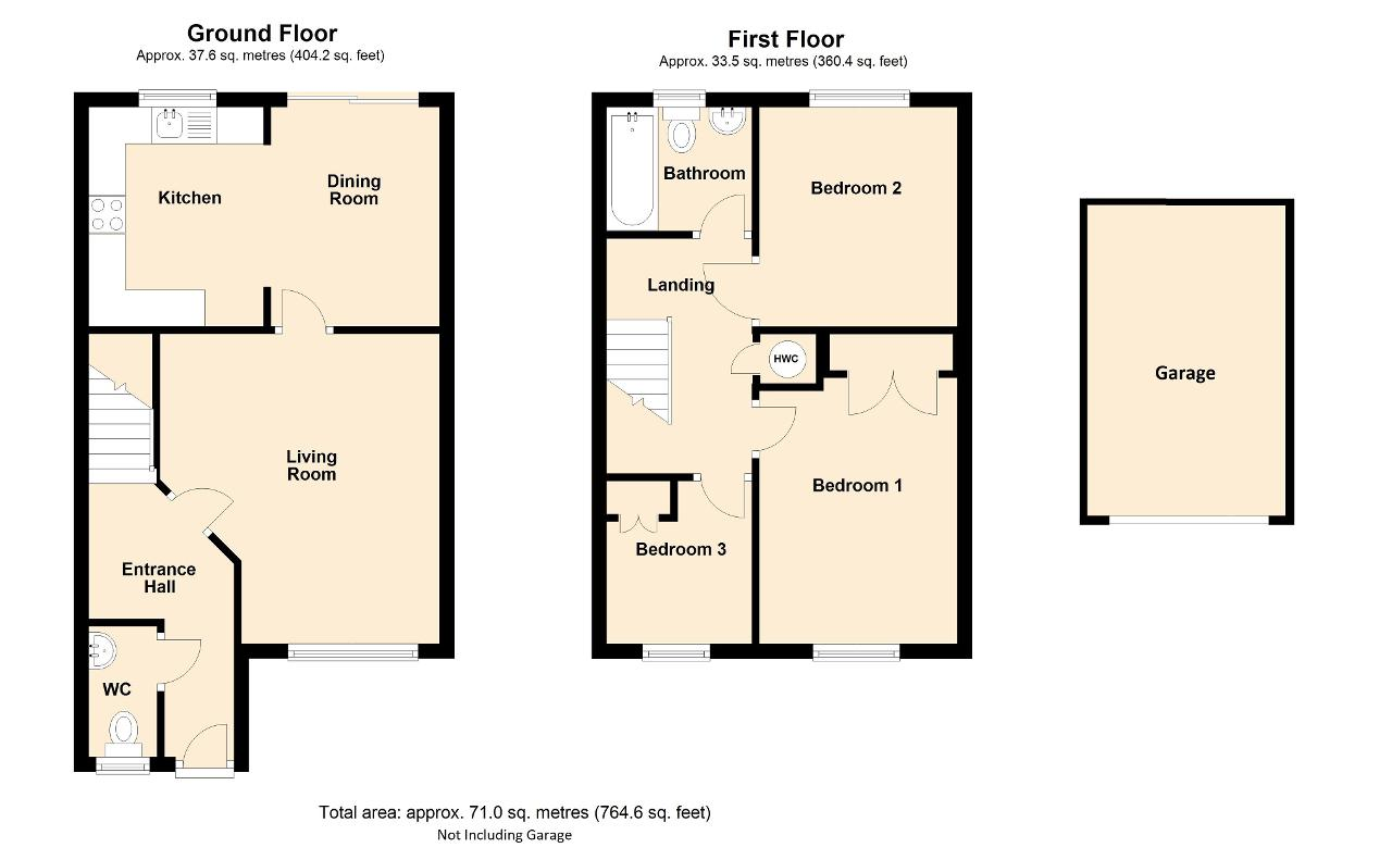 The stairs take you to the first floor landing with airing cupboard, loft access and doors communicating off. The property has three bedroom, two of which are double rooms and all being conveniently fitted with wardrobes. The single room is a lovely children's bedroom , again with a built in wardrobe, and would also be ideal as an office or study as required. The family bathroom has been re-fitted to offer a bath with shower and fitted screen, WC and wash hand basin. It is tiled throughout and has a double glazed window to the rear.