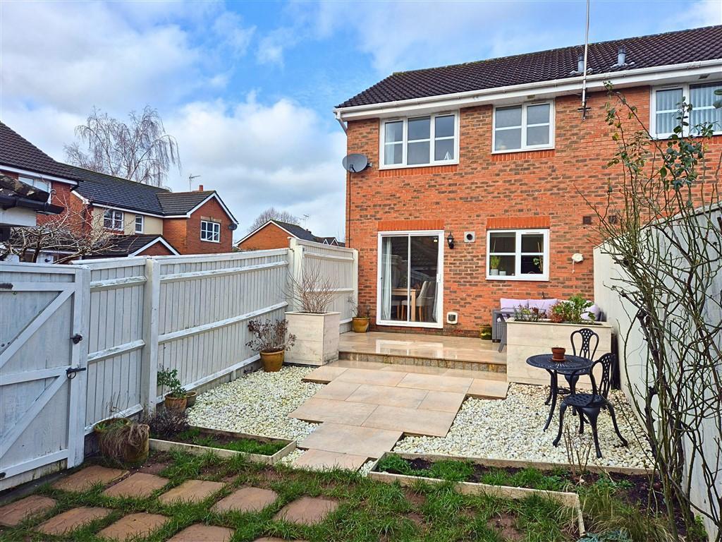 Outside the property has an well maintained, enclosed rear garden with a cream paved patio area, ideal for outside dining and a lawned area with gated access to the side. The garden is enclosed on all sides by fencing for privacy and security. The garage is located to the side and has an up and over door with light and power and ample driveway parking to the front.