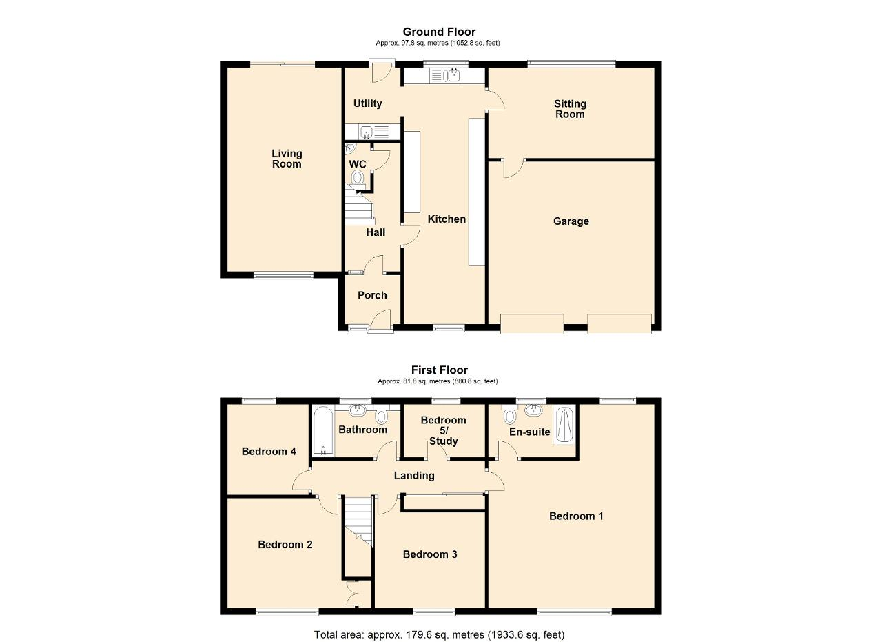 The first floor landing has useful built in storage cupboards and doors communicating off to five bedrooms. The principal room is a wonderfully large bedroom suite with dressing area and having an en-suite shower room with double shower, WC and wash hand basin, along with a heated towel rail and window to the rear. The remaining bedrooms are made up of three doubles all very well presented and the final bedroom being ideal for a home office or study. The family bathroom offers a white suite comprising of a bath with shower over and screen, wash hand basin with vanity unit and window to the rear.