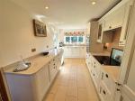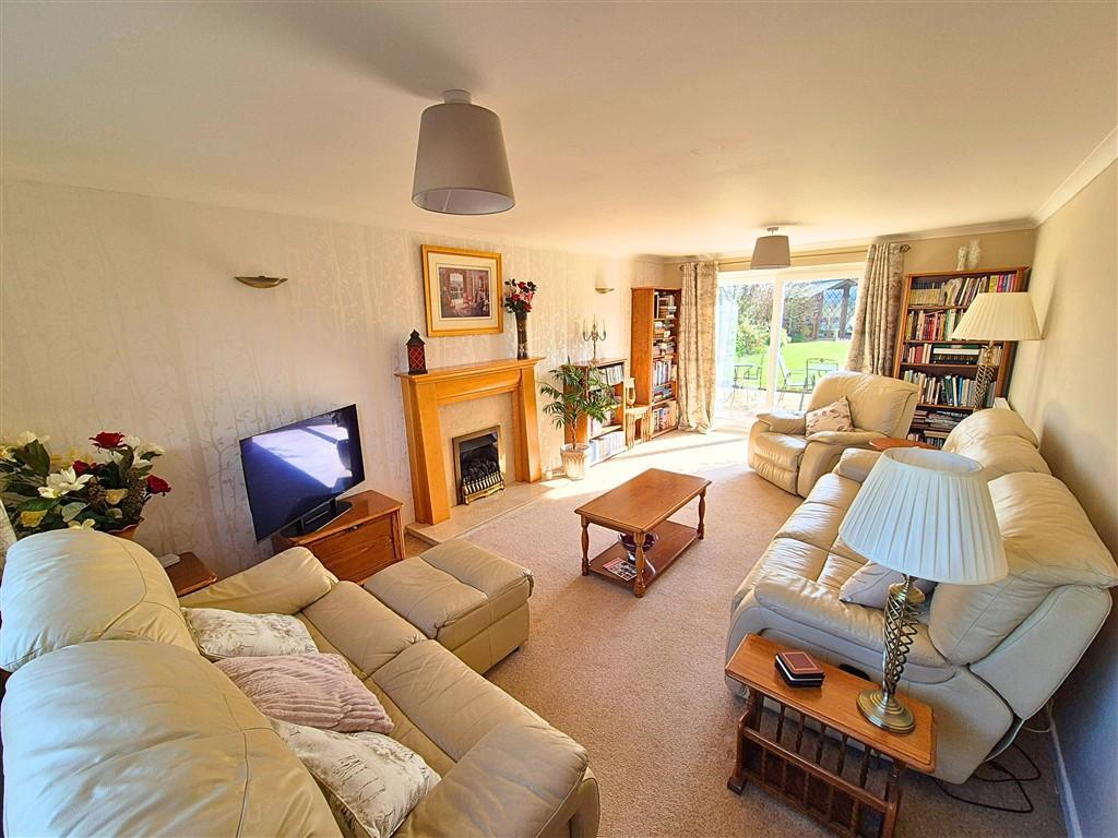 The property is approached over a block paved driveway with fore gardens and steps leading to the entrance door. The door leads into an enclosed porch with further door into the hallway. The hall has stairs off to the first floor and a useful cloakroom with WC and wash hand basin. The living room is a spacious and light room with windows to the front and doors opening out onto the gardens, with feature fireplace and inset fire. The dining kitchen has been recently re-fitted to a very high standard and now offers a good range of base and wall units with composite work surfaces over, fitted double oven, hob with cooker hood , built in fridge freezer, dishwasher and sink drainer. There is ample room for dining and it has duel aspect windows to both the front and rear elevation, giving ample natural light. The utility room is fitted to same high standard as the kitchen with base and wall units with plumbing for washing machine and housing the replacement gas central heating boiler. The garden room is off the kitchen and is a lovely room with a large window overlooking the rear gardens.