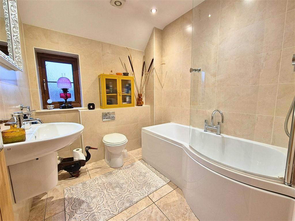 The stairs take you to the first floor landing with split level staircase with access to loft space, airing cupboard and doors off to the bedrooms. The property has four bedrooms, all very well presented with the main bedroom having an en-suite shower room with shower cubicle, wash hand basin, WC, chrome heated towel rail, neutral tiling and window to the side. The family bathroom is fitted with a white suite of bath with shower and fitted screen, WC and wash hand basin, with neutral tiling throughout and window with fitted spotlights.