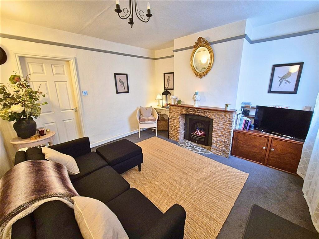 The property is approached via a front door opening into the living room. The living room is a cosy room with window to the front, fireplace with inset living flame gas fire and surround and picture rails. A further door leads through to an extended fitted breakfast kitchen which offers an abundance of light with window to the side and skylight. The kitchen offers a range of base and wall units with work surfaces over, a breakfast bar, space for cooker, sink drainer, plumbing for washing machine and metro tiling. There is a door to a useful rear lobby which gives access to the rear gardens and a further door leading into the family bathroom. The bathroom comprises a white suite of bath with shower over, WC wash hand basin, tiling and window to the rear elevation.
