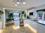 The open plan family kitchen is is a great feature of this property which blends character features with modern conveniences. Comprising a modern range of base and wall units with worksurfaces over and breakfast bar, a sink with boiler tap, electric cooker, microwave, plumbing for washing machine and tumble dryer, wine chiller, low level lighting, fireplace and ample space for table and chairs and decorative panelling to the wall. There are windows to the front and rear with door opening onto the rear gardens along with useful under stairs storage.
