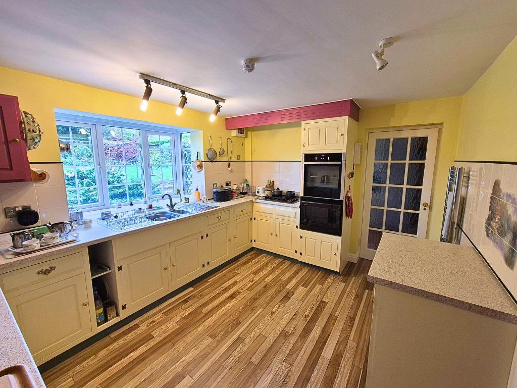 The kitchen is fitted throughout with base and wall units with work surfaces over, a fitted electric oven, gas hob, sink drainer, spotlights and space for a fridge freezer, chrome heated towel rail and having windows overlooking the rear gardens. The utility room is a useful room with base and wall units, sink and space for washing machine and doors leading out to both the front and rear.