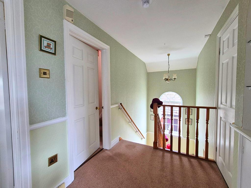 The stairs take you to the first floor landing with feature arched window and airing cupboard with doors communicating off. The property boasts three bedrooms on the first floor. All are well presented and comprise two good double bedrooms with the main bedroom benefiting of an ensuite shower room with WC, wash hand basin and shower cubicle. The third bedroom is ideal as a hobby room or office as required. The family bathroom is fitted with a white suite of bath, WC and wash hand basin and separate shower cubicle, being half tiled and having a window to the side with heated towel rail.